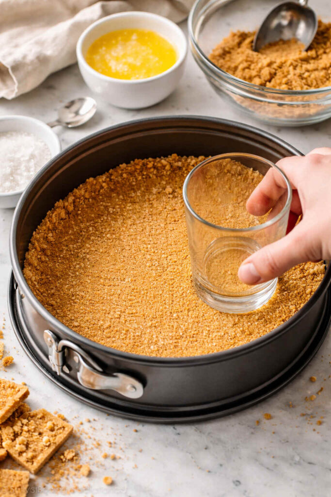 In a medium bowl, combine the crushed graham crackers, melted butter, and sugar. Mix until everything resembles wet sand. Press the mixture firmly into the bottom of a 9-inch springform pan. Use the back of a spoon or the bottom of a glass to get a smooth, even layer. Place the crust in the refrigerator to chill while you prepare the filling.