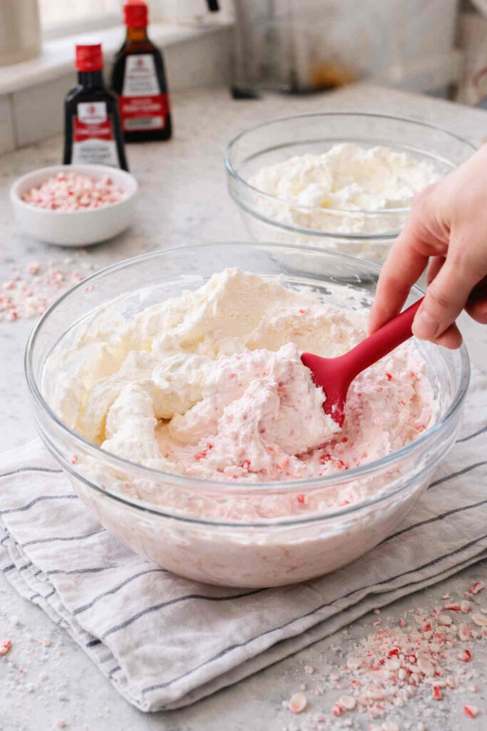In a separate bowl, whip the heavy cream until stiff peaks form. Understanding the science of whipped cream can help you achieve the perfect light texture. Gently fold the whipped cream into the cream cheese mixture, being careful not to deflate it. Stir in the crushed candy canes. If you’d like a festive pink color, fold in just a few drops of red food coloring.