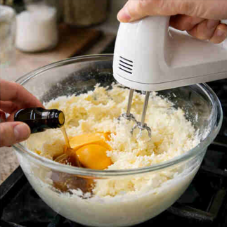- Cream butter and sugar until fluffy, then add egg and vanilla.