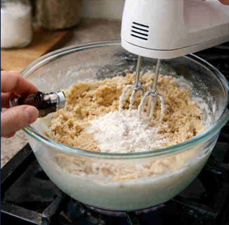 - Mix in dry ingredients until dough forms.
