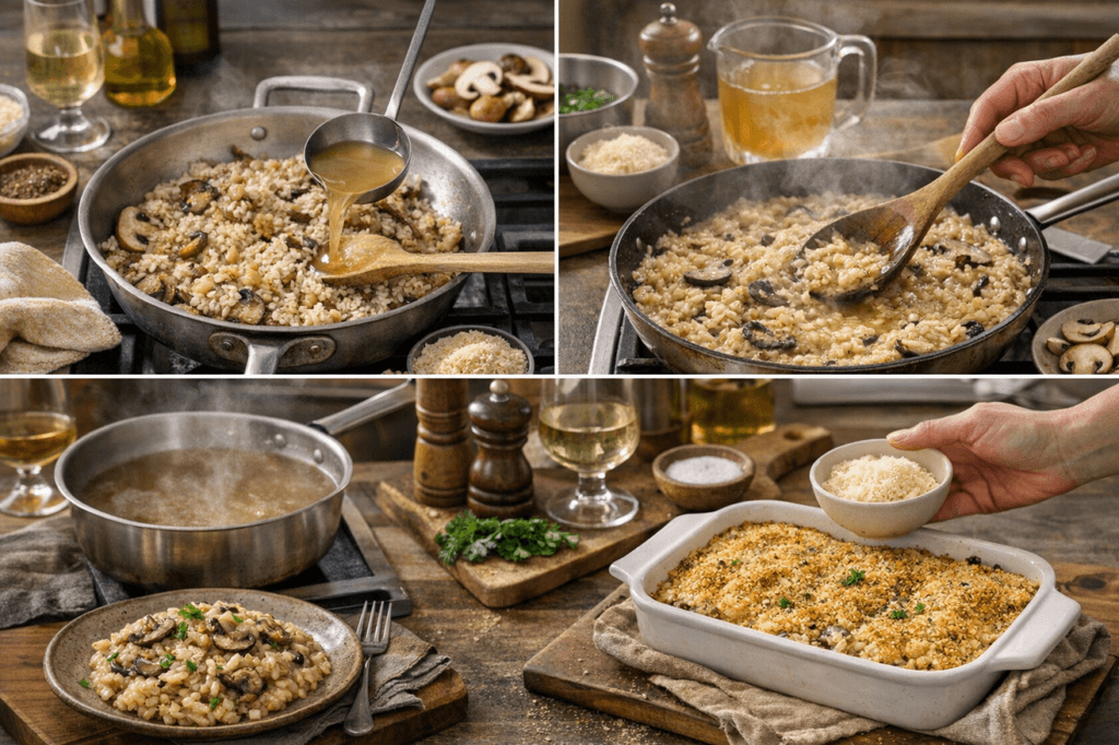 Mushroom risotto is one of those elegant dishes that feels luxurious yet is surprisingly simple when you follow the right steps. This Italian classic is known for its creamy texture and deep, earthy flavor, created by slowly cooking rice while gradually adding broth. The key is patience—stirring allows the starches to release, giving risotto its signature silky consistency. Perfect for a cozy dinner or an impressive meal for guests, this mushroom risotto delivers rich flavor without complicated techniques.
