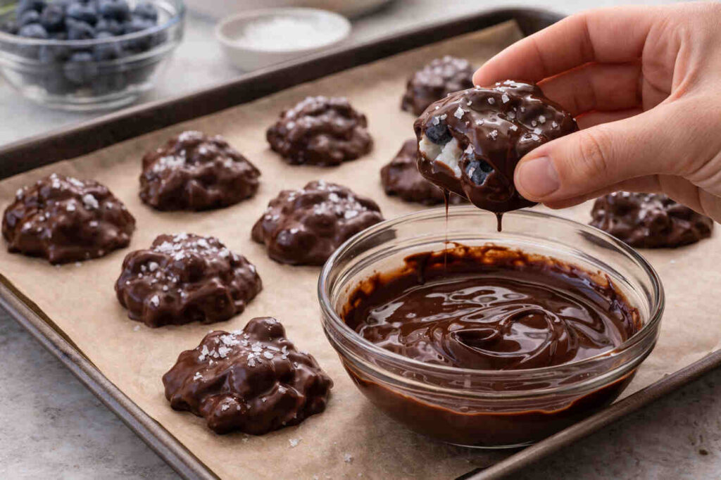 Freeze for another 15–20 minutes until chocolate is fully hardened.