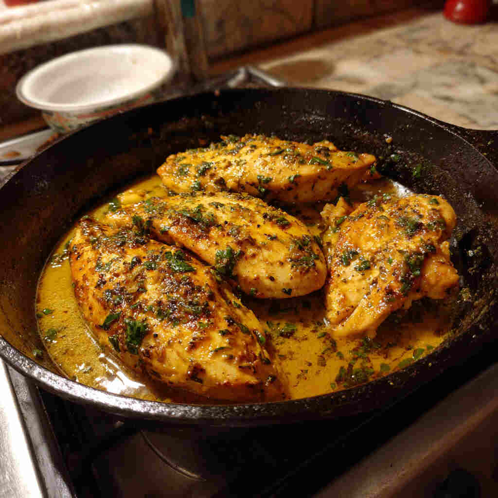 Garlic butter chicken is one of those recipes that instantly feels like comfort food with a gourmet twist. Tender, juicy chicken breasts are pan-seared until golden, then coated in a rich garlic butter sauce that’s infused with herbs and a hint of lemon. The result is a dish that’s simple enough for a quick weeknight dinner yet impressive enough to serve to guests. Best of all, it comes together in one pan, making cleanup easy while delivering maximum flavor.