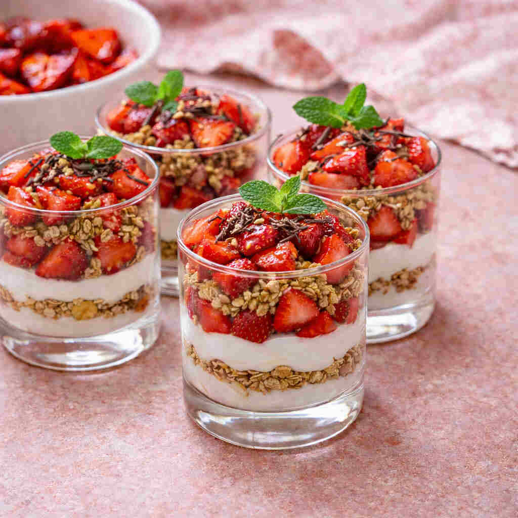 Homemade Strawberry Yogurt Parfaits are a fresh, creamy, and easy dessert made with layers of yogurt, juicy strawberries, and crunchy granola—perfect for a Galentine’s brunch or a light breakfast.