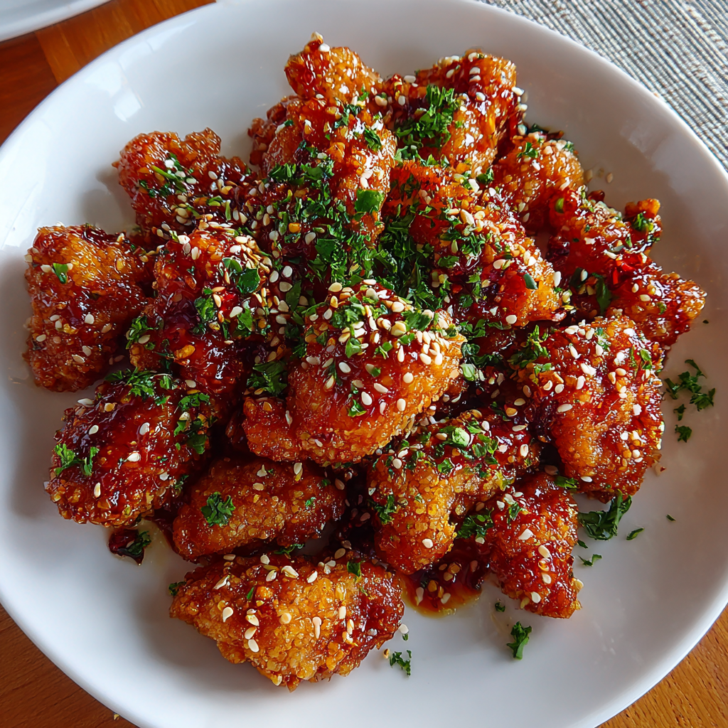 - Finish & serve: Garnish with sesame seeds and chopped green onions. Serve hot with rice, noodles, or as a finger food.