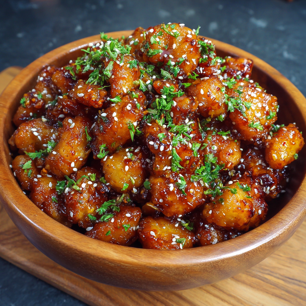 - Finish & serve: Garnish with sesame seeds and chopped green onions. Serve hot with rice, noodles, or as a finger food.