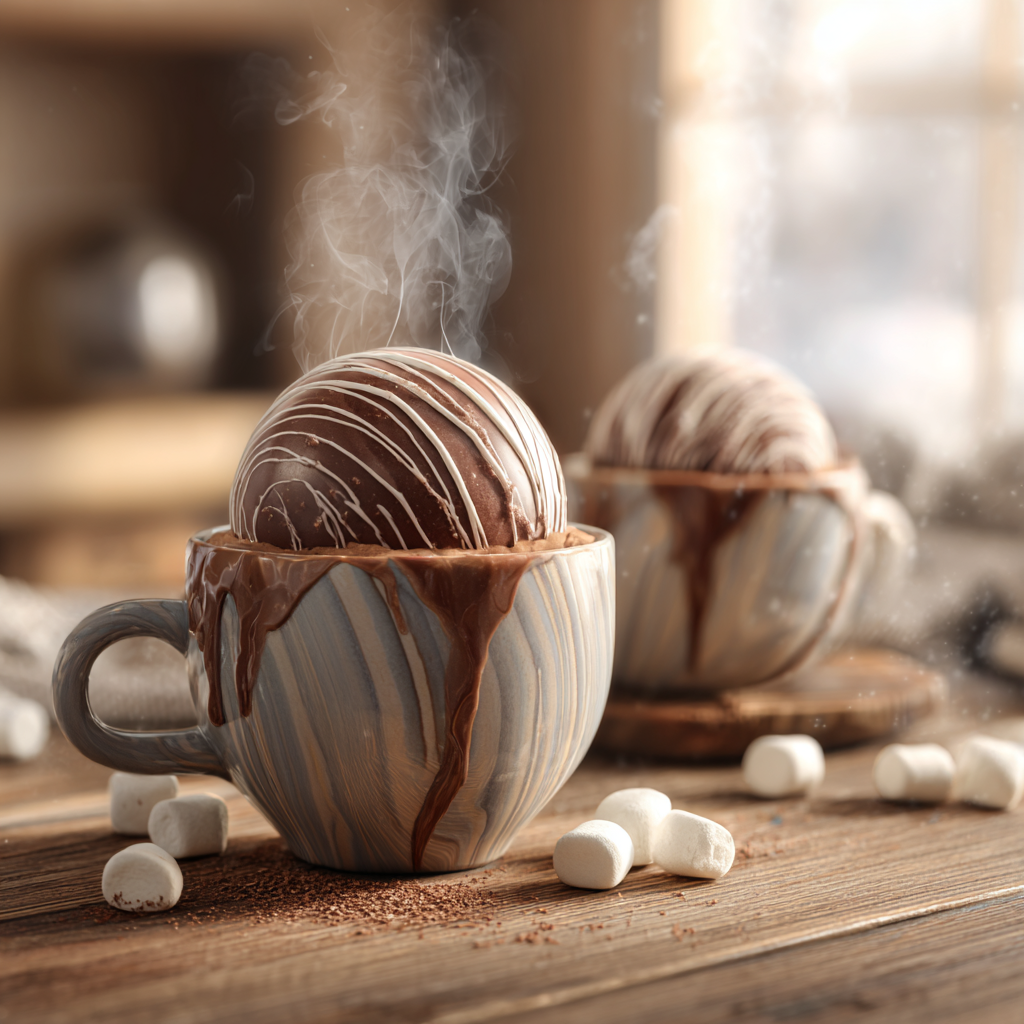 What people love most is that they’re customizable. You can make them classic (with cocoa and marshmallows), or creative — with peppermint pieces, caramel drizzle, or white chocolate coating.