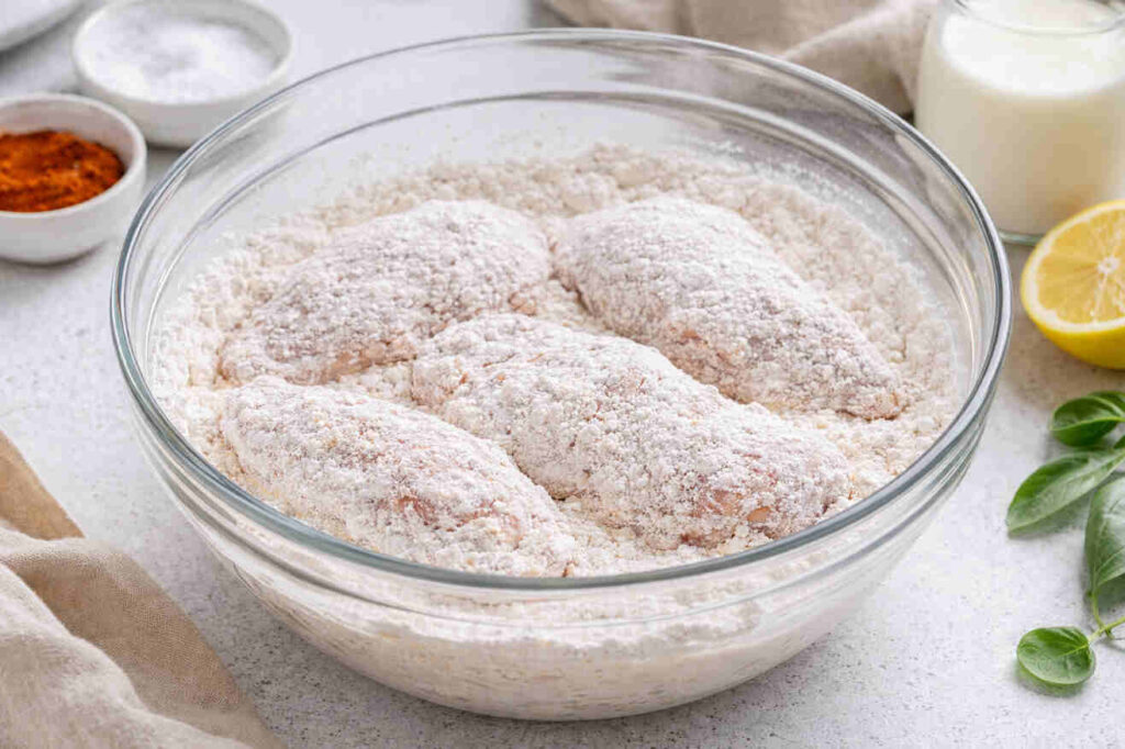 After dredging, let the coated chicken rest for 10 minutes before frying — this helps the crust stick better. Also, always drain fried chicken on a wire rack instead of paper towels to avoid sogginess.