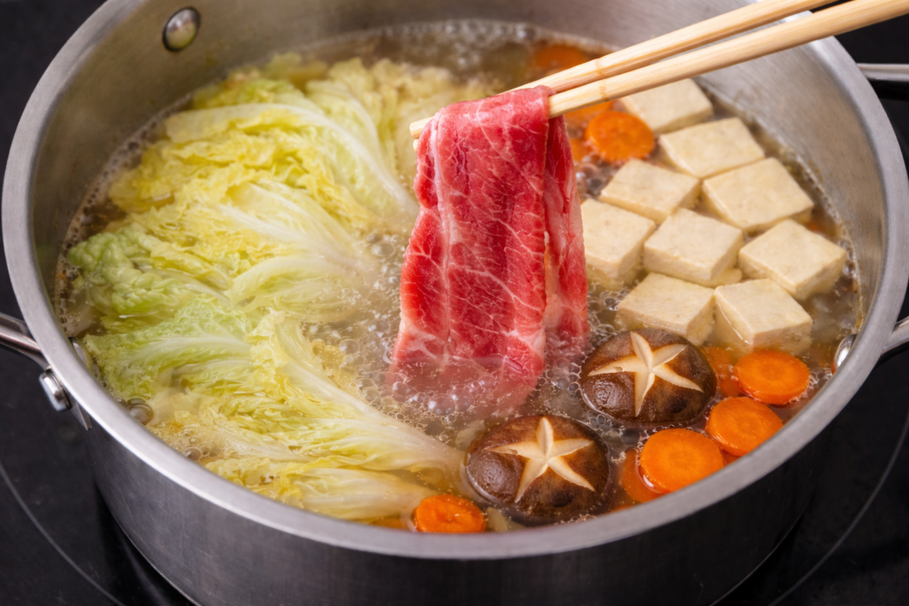 Shabu shabu is super fast—swish thin beef in the simmering broth for 10–20 seconds