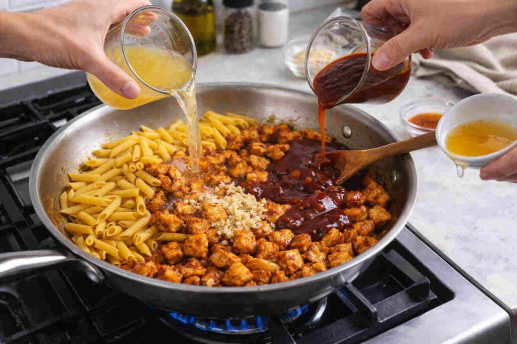 Instructions for One-Pan Tangy Honey BBQ Chicken Penne